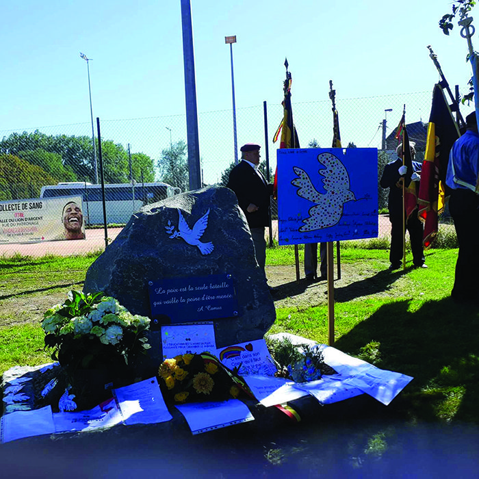 Cette grosse pierre d’1 mètre de haut est le symbole de la paix dans le monde. Nous étions heureux d’être présents pour cet événement de notre commune, avec les autorités communales et la Fédération des Combattants de Belgique.