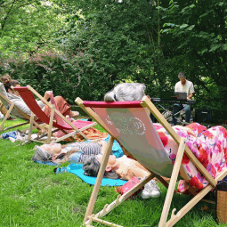 Ensuite, il y a eu la sieste musicale, avec le duo Dimensions (Kevin Aubry et Jeremy Calbert) qui nous a emmené dans une autre évasion, celle des sons et des instruments qui nous ont portés entre le sommeil et le rêve éveillé, en symbiose avec la nature environnante. En plus d’une musique douce et planante, le bruit du vent dans les feuilles des arbres et le chant des oiseaux ont bercés les auditeurs. Il n’était pas interdit de s’endormir dans l’herbe…