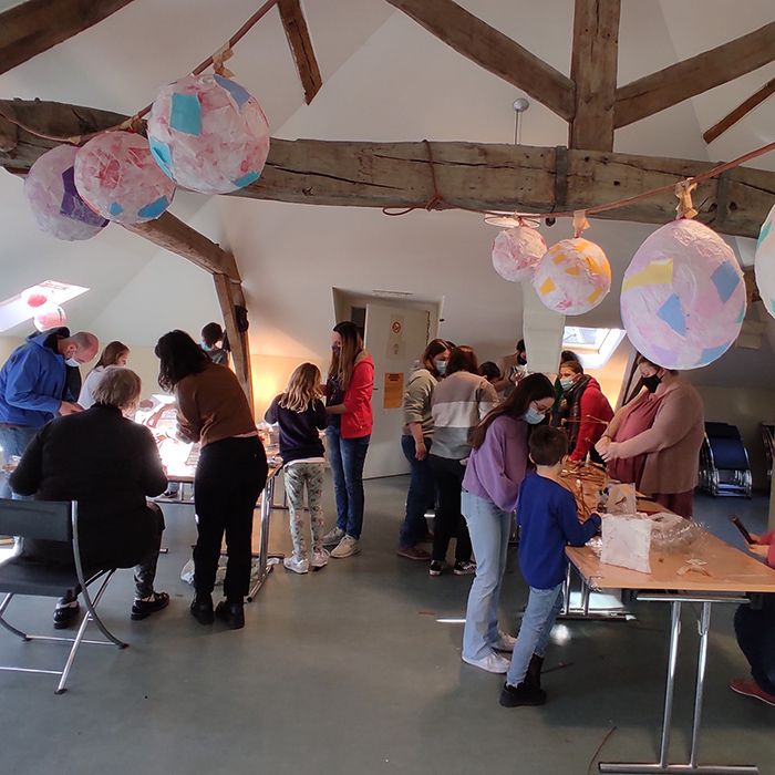 En préparation de la fête du Carnaval Sauvage, petits et grands se sont retroussés les manches, lors de deux après-midi ateliers en compagnie du collectif d’artistes la Boîte à clous, pour confectionner de belles lanternes, à l’aide de papier de soie, d’osier, de fil de fer, de carton et surtout de pas mal de dextérité et de créativité. Vous pourrez découvrir une partie de leurs créations, le soir du 12 mars au travers d’une installation sur le parcours ou directement dans les mains des participants.