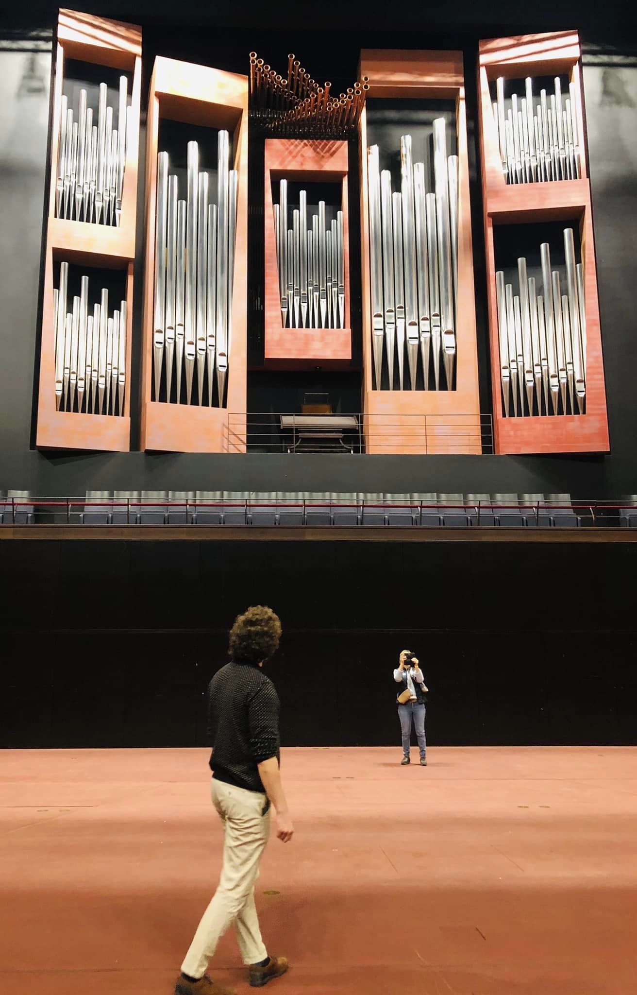 Une fois sur place, après une courte pause à l’aire d’autoroute de Wanlin (un quart d’heure maximum, la journée est bien remplie, le planning assez serré !), nous nous arrêtons juste en face de l’impressionnant bâtiment de la Philharmonie. Cette prouesse architecturale, inaugurée en 2005, a été imaginée par l’architecte de renom Christian de Portzamparc. Il a réussi à créer un bâtiment hors du commun qui répond aux exigences acoustiques les plus strictes (la Philharmonie Luxembourg est classée parmi les 10 meilleures salles au monde sur base de ce critère), avec un équipement dernier cri des espaces modulables pour répondre à toutes les demandes des artistes. Un premier sous-groupe sera guidé à travers les méandres des innombrables couloirs pour découvrir les loges, la salle principale, la salle secondaire, les couloirs d’accès, etc. Lors de cette visite, nous appréhenderons les secrets de fabrication du bâtiment, la richesse de la programmation dans tous les styles de musiques, le splendide orgue, l’ingénieuse machinerie et encore bien d’autres informations et anecdotes.